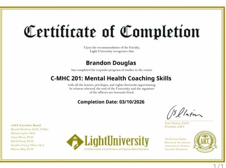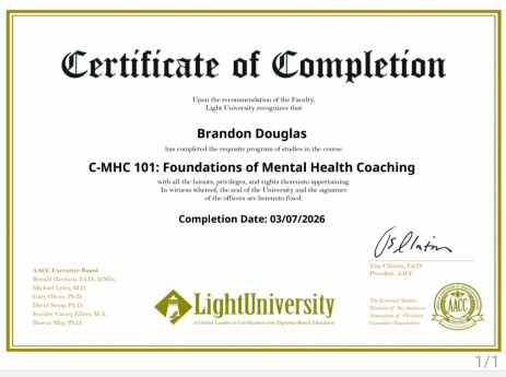 Brandon offers both online and in-person sessions focused on life coaching and Christian guidance. His practical, compassionate approach empowers clients to overcome obstacles, build resilience, and embrace meaningful change.